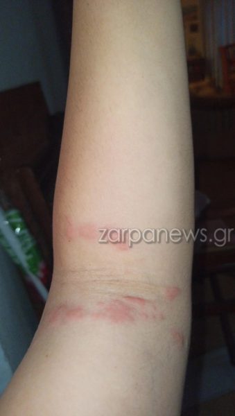 Όπως λέει, έχει παρουσιάσει ζαλάδα, ταχυπαλμία και έντονη φαγούρα στο σημείο. Παράλληλα, νιώθει και πόνο στο σημείο που βρίσκονται τα σημάδια, αλλά μόνο κατά την αφή.