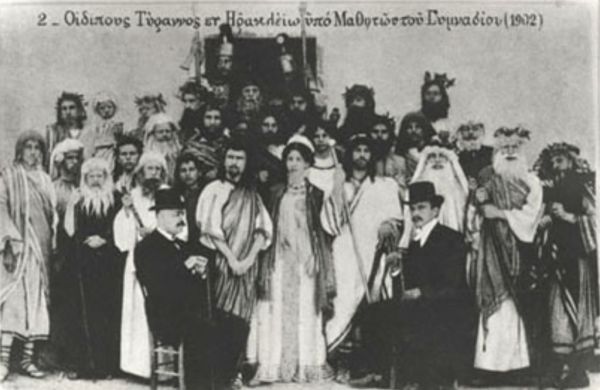 «Όταν κάποτε ήλθαν εις το Ηράκλειον, ο Μιστριώτης και ο Κυπαρίσσης, έμειναν καταπληκτικοί από την απόδοσιν του ερασιτέχνου ηθοποιού Καζαντζάκη εις τον ρόλον του Κρέοντος εις τον “Οιδίποδα Τύραννον”. Οιδίπους ο μακαρίτης Ανδρ. Ξενάκης και τον ρόλον της Ιοκάστης υπεδύετο ο Μανώλης Γεωργιάδης, που τον ετυφέκισαν οι Γερμανοί μαζί με τα άλλα δύο αδέλφια του».