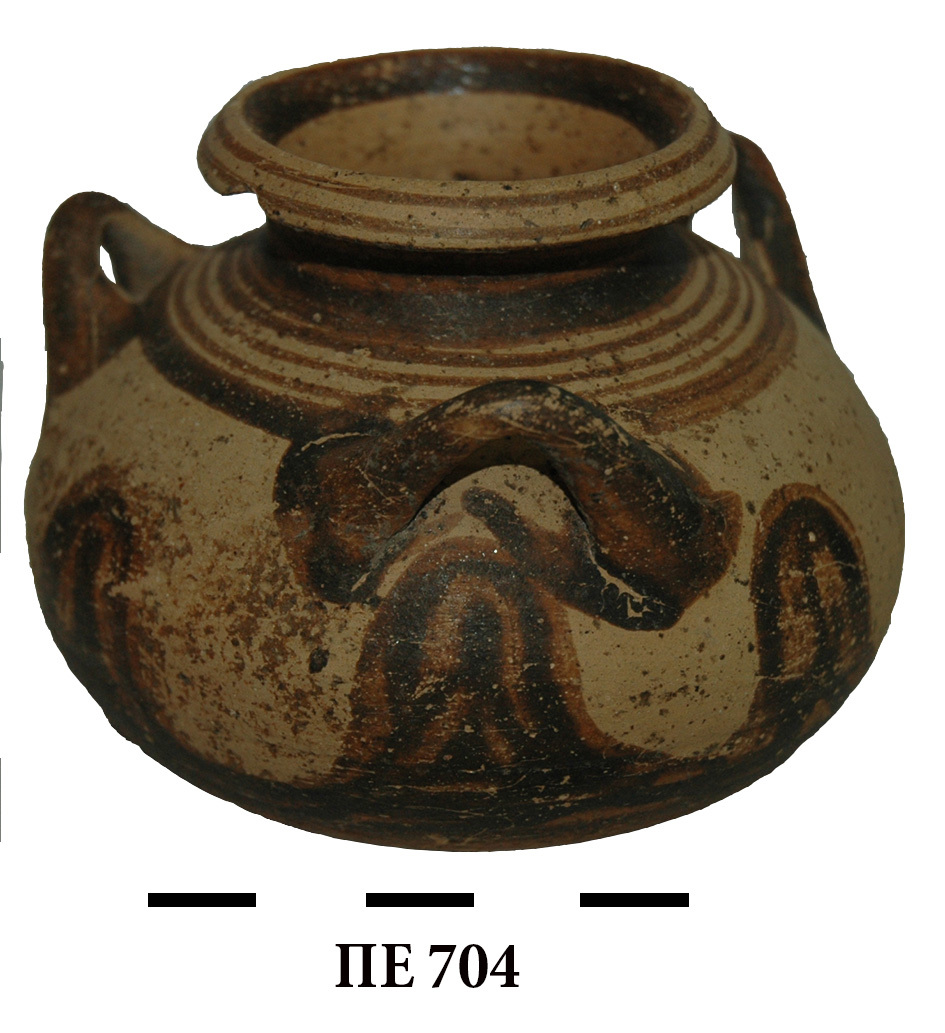 Επιπλέον, «εκτός από την κεραμική ντόπιας παραγωγής, αξιοσημείωτος είναι ο αριθμός των ‘εισηγμένων’ αγγείων από την Αργολίδα και ίσως και από την Κρήτη […]