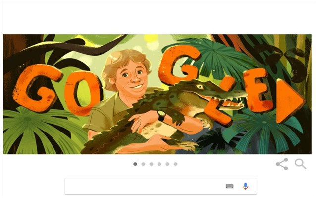 Στον Αυστραλό φυσιοδίφη και σταρ της τηλεόρασης Στιβ Άιρβιν (Steve Irwin), γνωστό και ως «κροκοδειλάκια», αφιερώνει η Google το σημερινό της doodle.