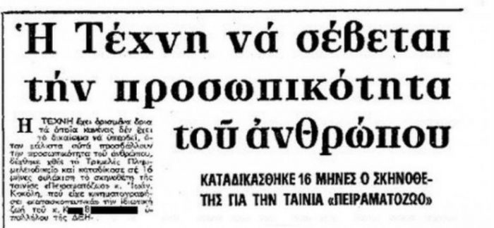 Κάπως έτσι – ως «βιασμός» της τέχνης – ερμηνεύτηκε από τη Δικαιοσύνη στα μέσα της δεκαετίας του ’70 η προσπάθεια του σκηνοθέτη Γιάννη Κοκκόλη να δημιουργήσει ίσως την πιο αιρετική ταινία όλων των εποχών στον παγκόσμιο κινηματογράφο!