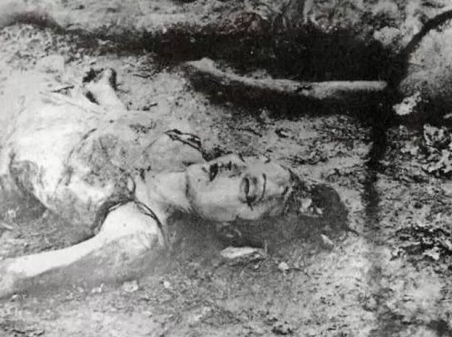 Ορμησαν τότε αφιονισμένοι πάνω της και μεσα σ’ ένα κατήφορο από προπηλακισμούς την έσυραν κοντά σε ένα ανοιγμένο λάκκο κι’ εκεί την έγδυσαν με την βία. Τότε της φυτέψαν δύο σφαίρες στο σβέρκο…