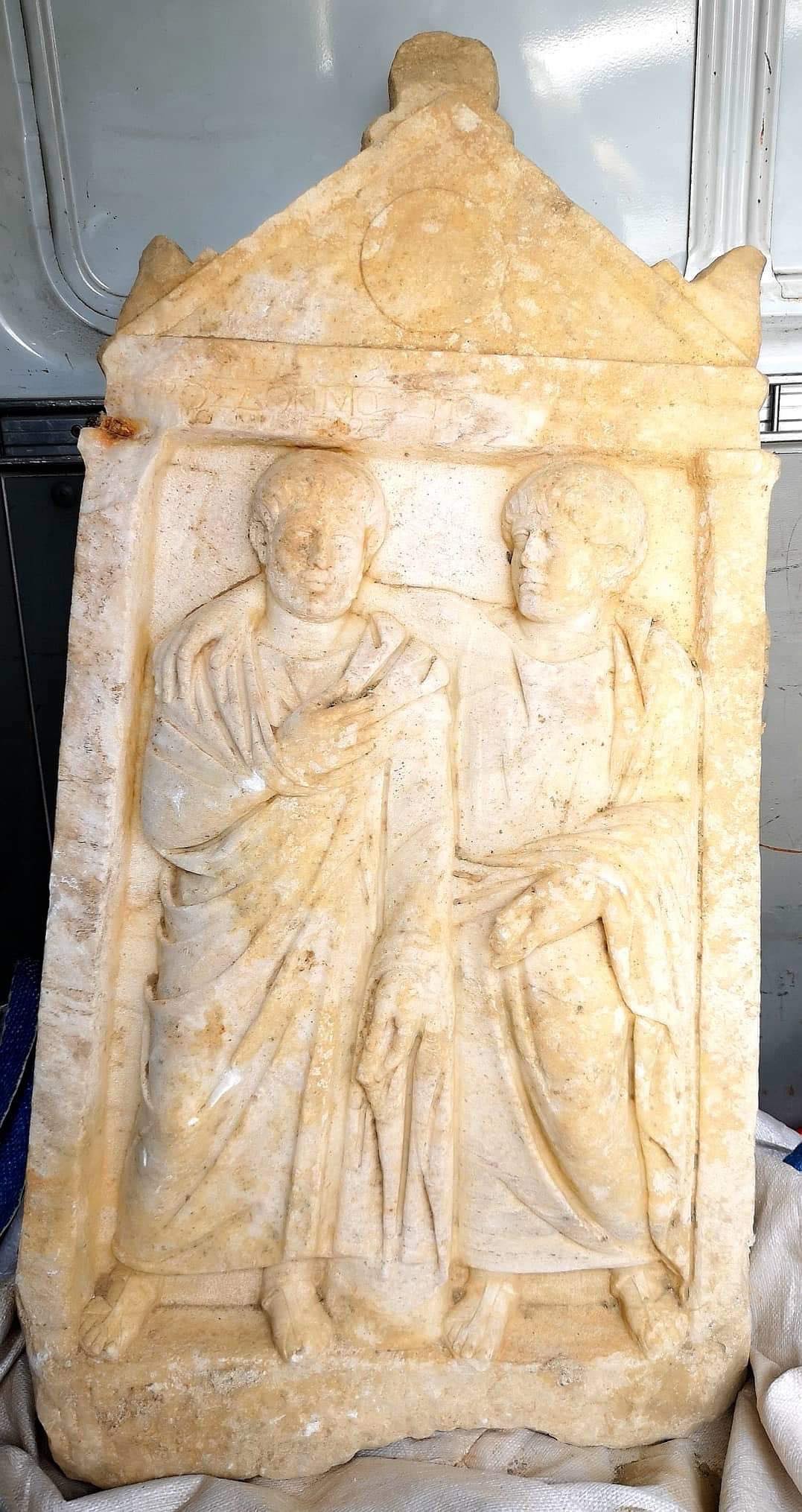 Μετά από αξιοποίηση στοιχείων που σχετίζονταν με υπόθεση αρχαιοκαπηλίας που εξιχνίασε τα περασμένα Χριστούγεννα o Γιώργος Τσούκαλης στη Λάρισα, κατάφερε σήμερα να διασώσει από τα χέρια αρχαιοκάπηλων επιτύμβια ανάγλυφη πλάκα πολύ μεγάλης αξίας ύψους 1.20 και πάχους 7 πόντων η οποία βρέθηκε σε άριστη κατάσταση.