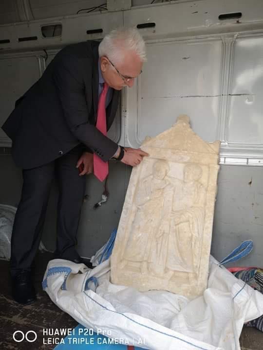Μετά από αξιοποίηση στοιχείων που σχετίζονταν με υπόθεση αρχαιοκαπηλίας που εξιχνίασε τα περασμένα Χριστούγεννα o Γιώργος Τσούκαλης στη Λάρισα, κατάφερε σήμερα να διασώσει από τα χέρια αρχαιοκάπηλων επιτύμβια ανάγλυφη πλάκα πολύ μεγάλης αξίας ύψους 1.20 και πάχους 7 πόντων η οποία βρέθηκε σε άριστη κατάσταση.