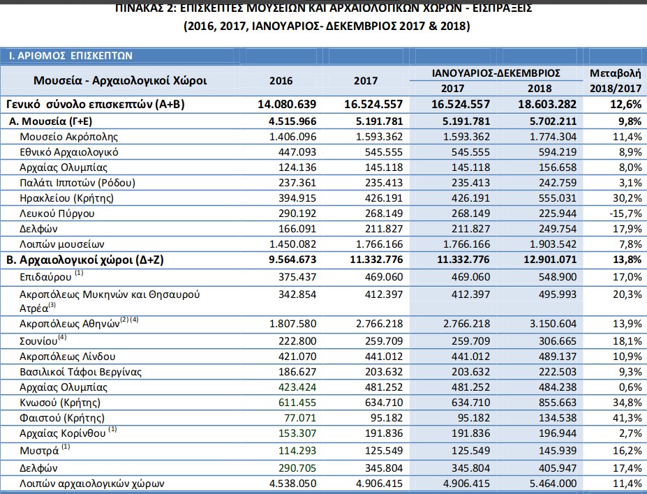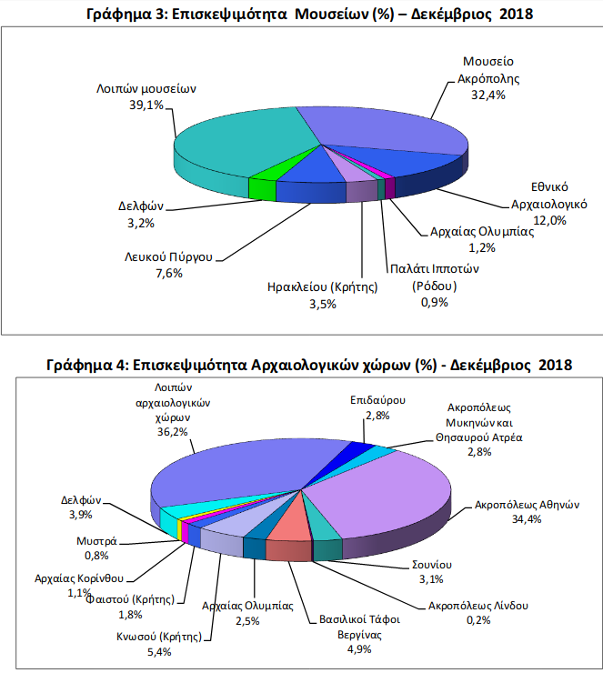 Στους αρχαιολογικούς χώρους, παρατηρήθηκε τον Δεκέμβριο πέρυσι, σε σύγκριση με τον αντίστοιχο μήνα του 2017, αύξηση των επισκεπτών κατά 17%, ενώ ο αριθμός των επισκεπτών ελεύθερης εισόδου παρουσίασε αύξηση 23,5% και οι εισπράξεις αυξήθηκαν 14,3%.