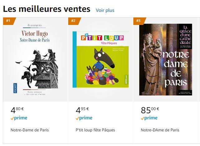 Όπως διαβάζουμε στην γαλλική Le Figaro, το μυθιστόρημα του Ουγκώ, που περιγράφει την ιστορία της Εσμεράλδας και του Κουασιμόδου γύρω από την Παναγία των Παρισίων σημειώνει πωλήσεις ρεκόρ. Λίγες μόνο ώρες μετά την φωτιά στην Παναγία των Παρισίων, το κλασικό λογοτεχνικό έργο του 1831, βρέθηκε στην κορυφή των πωλήσεων του γαλλικού Amazon.