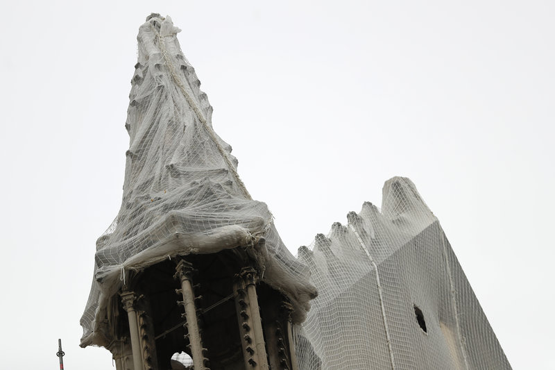 Η τοποθέτηση του προστατευτικού είναι η πρώτη προτεραιότητα, τόνισε ο επικεφαλής αρχιτέκτονας στην Παναγία των Παρισίων, Φιλίπ Βιλνέβ. Ηδη, έχουν αρχίσει να «τυλίγουν» τμήματα του καθεδρικού με το προστατευτικό. Παράλληλα υπάρχουν πλάνα να δημιουργηθεί μια «ομπρέλα» στη στέγη, που θα προστατεύει τον καθεδρικό κατά τη διάρκεια των εργασιών αποκατάστασης. Ομως, η ομπρέλα δεν είναι ακόμη έτοιμη.