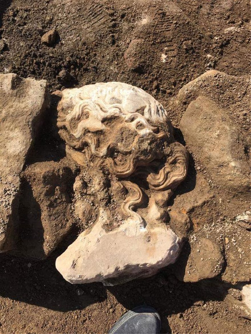 Οι αρχαιολόγοι πραγματοποιούσαν ανασκαφές γύρω από τα ερείπια του μεσαιωνικού τείχους όταν βρήκαν το μαρμάρινο κεφάλι, το οποίο πιστεύουν πως αντικατοπτρίζει τον Διόνυσο και ενδεχομένως αποτελεί μέρος ενός μεγάλου αγάλματος.