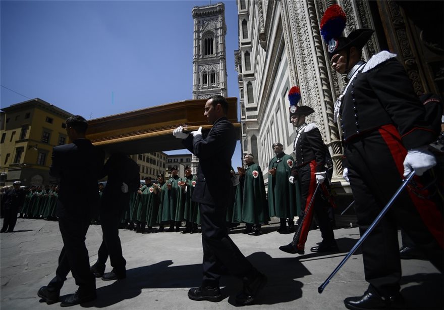 Σχεδόν 1.500 άνθρωποι πήραν θέση στο εσωτερικό του Ντουόμο, του εμβληματικού καθεδρικού ναού της Φλωρεντίας αλλά πολλοί περισσότεροι συγκεντρώθηκαν περιμετρικά του φημισμένου μνημείου της πρωτεύουσας της Τοσκάνης για το τελευταίο αντίο στον «μαέστρο» που ήταν στενά συνδεδεμένος με την πόλη αυτή.