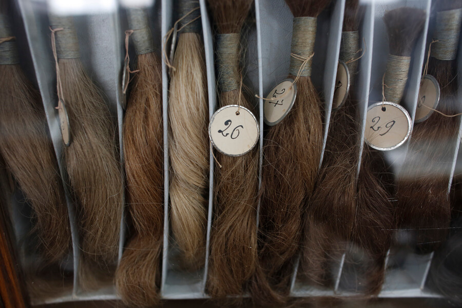 Εντύπωση προκαλεί επίσης και το ράφι εκείνο με δείγματα τριχωτού κεφαλής για προτυποποίηση χρωματισμών.