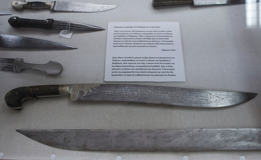 Πίσω από τα εκθέματα που βρίσκονται στο Μουσείο κρύβεται και μία ιστορία, όπως αυτή του περιβόητου λήσταρχου Γιαγκούλα. Το κεφάλι του μαζί με την περίφημη «Παρδάλα» με την οποία, εκτιμάται ότι σκότωσε 54 ανθρώπους εκτίθενται στο Εγκληματολογικό Μουσείο. Στην «Παρδάλα», τη μαχαίρα του, που είχε αποκτήσει το 1917 είχε χαράξει μάλιστα και ένα ανορθόγραφο μήνυμα όπου κατακεραύνωνε την ελληνική δικαιοσύνη.