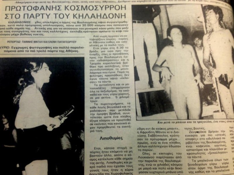 Το περίφημο πάρτι στη Βουλιαγμένη, έμελλε να μείνει ιστορικό. Ο Τύπος τότε την είχε χαρακτηρίσει «Το Γούντστοκ της Ελλάδας».