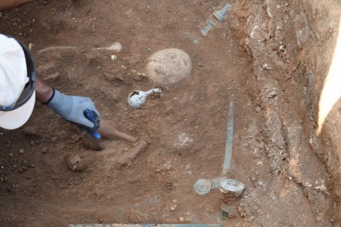 Στη θεμελίωση της οικίας αποκαλύφθηκε λακκοειδής τάφος, των υστεροελληνιστικών χρόνων (προς τα τέλη του 1ου αιώνα π.Χ.), με πλούσια κτερίσματα. Ο τάφος εντοπίστηκε ασύλητος από την αρχαιότητα και αδιατάρακτος από τη σύγχρονη δόμηση.