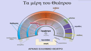 Μια από τις βασικότερες αρχές είναι η ενίσχυση της φωνής με έγκαιρες, θετικές ηχοανακλάσεις επάνω σε στοιχεία του θεάτρου (δάπεδο ορχήστρας, πρόσοψη κτιρίου σκηνής, λογείο), για την εξασφάλιση ενός φυσικού, αυτοδύναμου (παθητικού) μεγαφώνου, που αναπληρώνει τις ενεργειακές απώλειες, κυρίως στα υψηλότερα καθίσματα του κοίλου».
