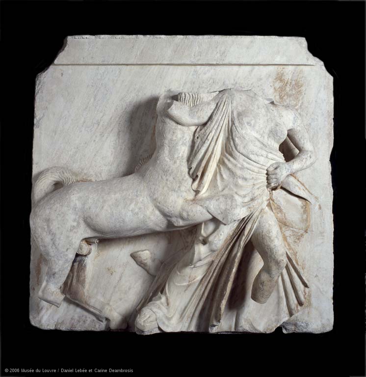 Η δέκατη μετόπη είναι η πρώτη στην οποία παρουσιάζεται μια Λαπιθίδα καθώς τρέχει προσπαθώντας να αποφύγει έναν Κένταυρο / Φωτογραφία: Μουσείο Λούβρου