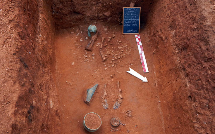 «Στην περιοχή, στην οποία επικεντρώθηκε η φετινή ανασκαφή, ξεχώριζαν έξι ταφές οριοθετημένες με ταφικό περίβολο από σχιστόπλακες και αργούς λίθους, διαστάσεων κατά μέσο όρο 4,00μ.Χ3,50μ. Οι νεκροί στις συγκεκριμένες ταφές είχαν εναποτεθεί σε λάκκους, βάθους περίπου δύο μέτρων από το επίπεδο του περιβόλου ή σε ορθογώνιους κτιστούς με αργολιθοδομή τάφους, με λιθόστρωτο δάπεδο. Πρόκειται δυστυχώς για συλημένες ταφές, οι οποίες εξαιτίας του μνημειακού τους μεγέθους προκάλεσαν το ενδιαφέρον των τυμβωρύχων», τονίζει η ανακοίνωση του ΥΠΠΟΑ.