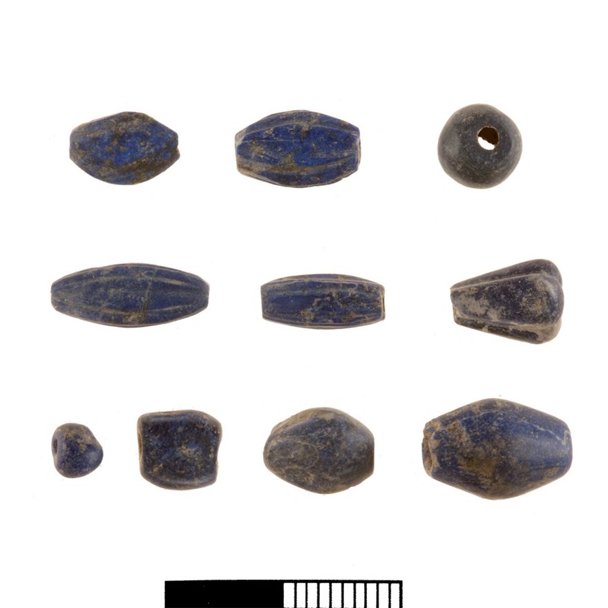 Παρά την απλή αρχιτεκτονική τους, δύο δωμάτια περιείχαν ”θησαυρούς” από μέταλλα, γυαλί και ημιπολύτιμους λίθους. Ο πρώτος θησαυρός βρέθηκε το 2018 σε δωμάτιο που πιθανότατα χρησίμευε ως αποθηκευτικός χώρος. Η απόθεση περιείχε δύο τμήματα από χάλκινα τάλαντα, μία μάζα από σκωρίες και κοσμήματα: Ένα χρυσό δαχτυλίδι, ένα χρυσό βραχιόλι, 26 χρυσές χάντρες (δισκοειδείς, σφαιρικές και σε σχήμα πάπυρου), μία αργυρή χάντρα, 5 χάλκινες, σφενδόνη χάλκινου δαχτυλιδιού. Μαζί με αυτά ήταν μεγάλος αριθμός από γυάλινες χάντρες διαφόρων σχημάτων, (39 σφαιρικές και 25 σε σχήμα πάπυρου), 4 από το λεγόμενο αιγυπτιακό μπλε, 20 από κορνεόλιο λίθο, 1 από αμέθυστο, 10 από λάπις, μία σφραγίδα από αχάτη με παράσταση πλοίου που η πρύμνη του έχει τη μορφή κεφαλής ζώου και ένα λίθινο περίαπτο με μορφή πιθήκου».