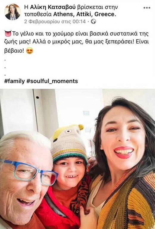 Όμως, λίγες μέρες πριν εισαχθεί εσπευσμένα στο νοσοκομείο είχε βγάλει μια τρυφερή οικογενειακή φωτογραφία με την σύζυγό του, Αλίκη Κατσαβού, και τον γιο τους, Φοίβο. Οι τρεις τους είχαν ποζάρει αγκαλιασμένοι και χαμογελαστοί στον φακό και η Αλίκη Καταβού είχε γράψει: