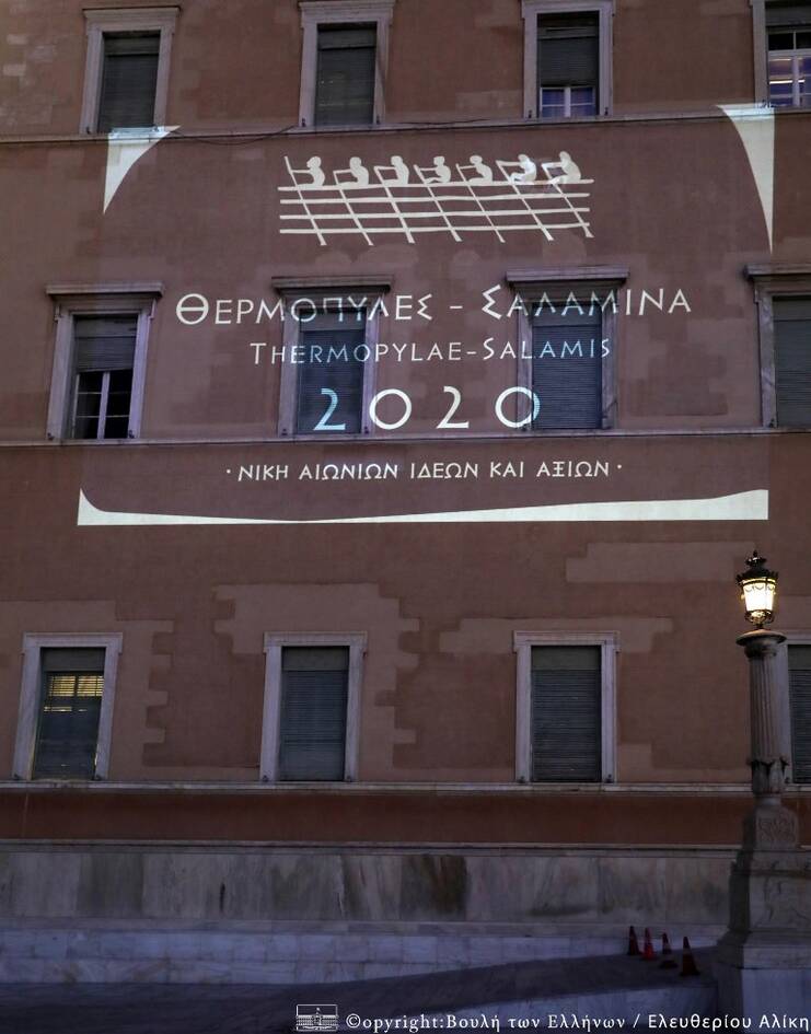Η Βουλή των Ελλήνων φωταγωγήθηκε το βράδυ της Τρίτης (29/09) με το λογότυπο του Επετειακού Έτους «Θερμοπύλες – Σαλαμίνα 2020. Νίκη Αιώνιων Ιδεών και Αξιών», συμμετέχοντας στις εκδηλώσεις ανάδειξης της πολυσήμαντης αυτής επετείου.