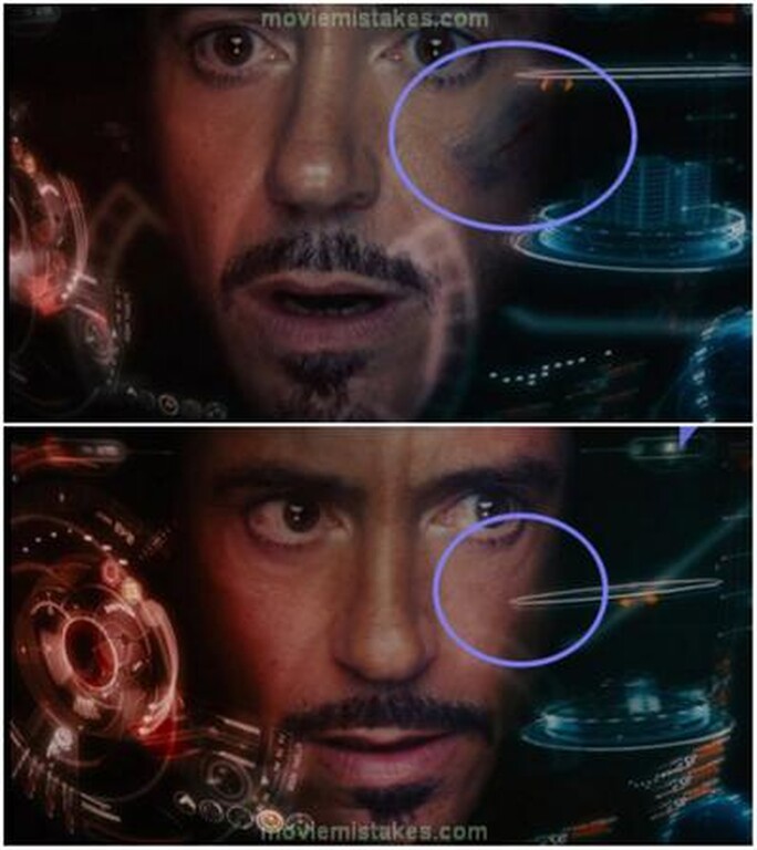 O Iron Man τη μία στιγμή έχει μία πληγή, την άλλη όχι.