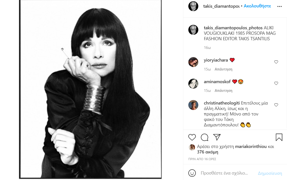 O φωτογράφος Τάκης Διαμαντόπουλος δημοσίευσε ένα διαφορετικό πορτρέτο της Αλίκης Βιουγιουκλάκη.