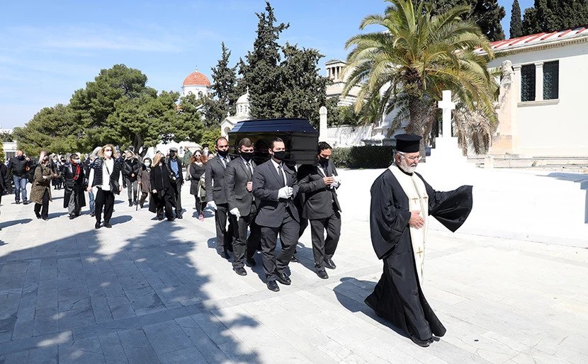 Στο κοιμητήριο, λόγω των περιοριστικών μέτρων του κορωνοϊού, βρέθηκαν ελάχιστοι φίλοι και συγγενείς για να πουν το τελευταίο «αντίο».
