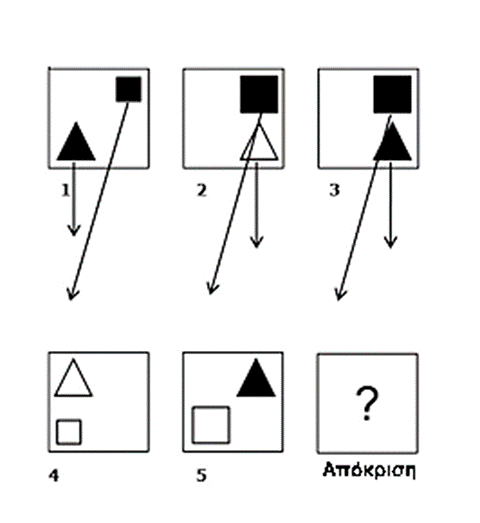 Παράδειγμα: Από τις πέντε επιλογές A, B, Γ, Δ και E, επιλέξτε το διάγραμμα που ολοκληρώνει την παραπάνω ακολουθία.