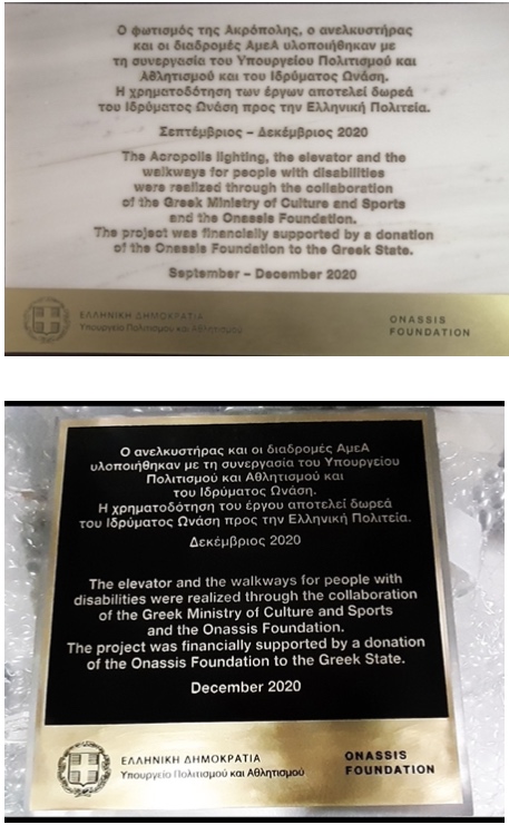 Από την πλευρά του, το υπουργείο Πολιτισμού και Αθλητισμού κάνει λόγο για στοχοποίηση της κ. Μενδώνη και διαψεύδει ότι θα αναρτηθεί πινακίδα επί του Βράχου της Ακρόπολης. Δίνει, μάλιστα, στη δημοσιότητα τις πινακίδες οι οποίες θα αναρτηθούν εντός των επομένων ημερών.
