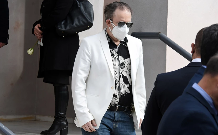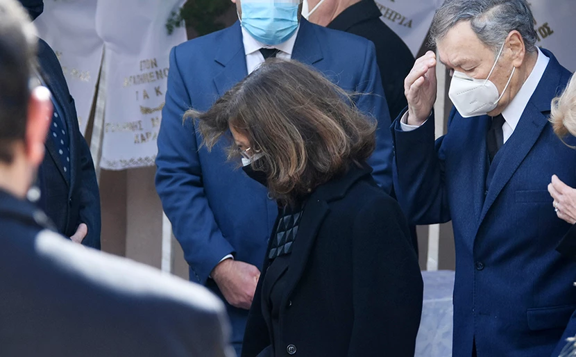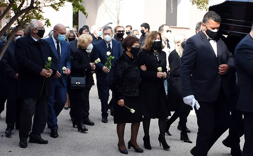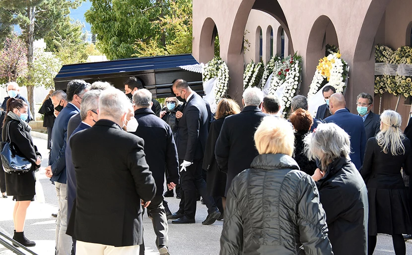 Τραγική φιγούρα η σύζυγος του, Έφη Πίκουλα η οποία φορώντας μαύρα ρούχα και μάσκα δεν μπορούσε να συνειδητοποιήσει πως δεν θα ξαναδεί τον άνθρωπο με τον οποίο μοιράστηκε τη ζωή της για 36 ολόκληρα χρόνια.