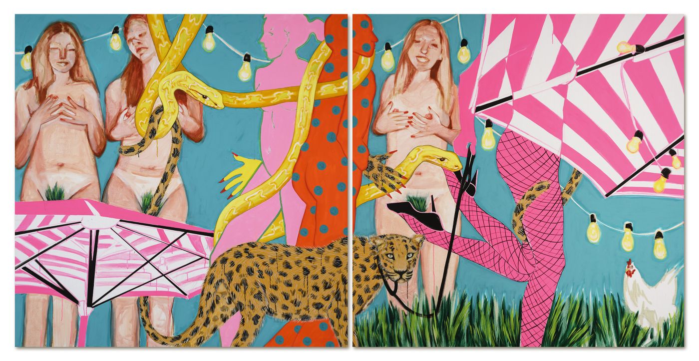 Δέρμα, θηλυκές καμπύλες, θηρία και γυμνά, αποθεώνουν την δυναμικότητα της γυναικείας ενδυνάμωσης στον κόσμο της Σ.Καπεζάνου, αφαιρώντας την αντρική φιγούρα και παρουσία που παρατηρούσαμε σε προηγούμενα της έργα.