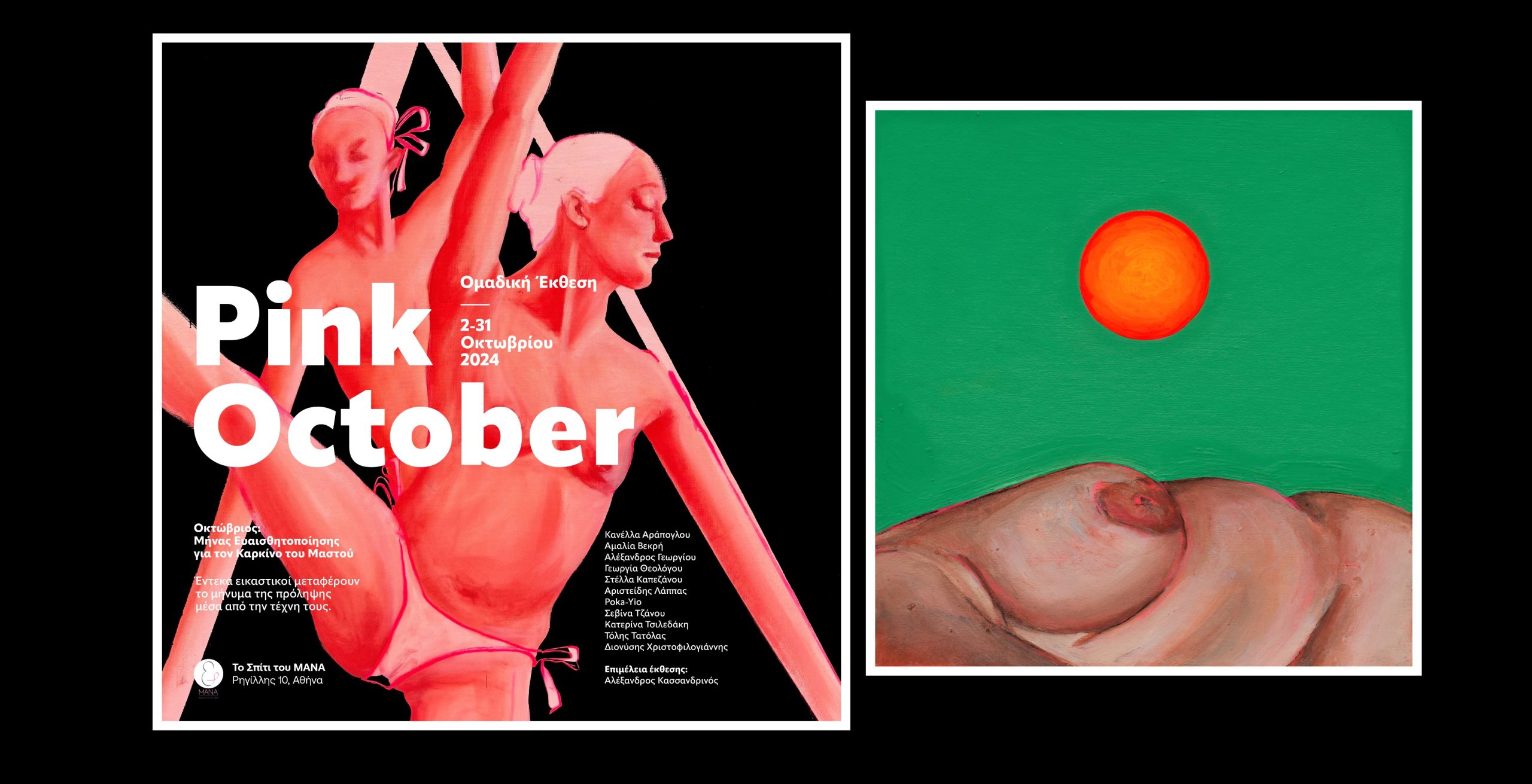 Για εμάς διαχρονική αποστολή αποτελεί η στήριξη των γυναικών και η συμβολή στην θετική τους ψυχολογία. Ας τιμήσουμε λοιπόν το φετινό Οκτώβριο «Μήνα Ευαισθητοποίησης για τον Καρκίνο του Μαστού» καλώντας όλες και όλους να θαυμάσουν από κοντά τα εξαιρετικά έργα των καλλιτεχνών μας και να γνωρίσουν από κοντά τι σημαίνει προσφορά ζωής».