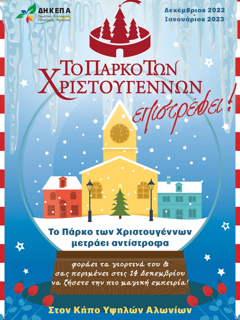 Στις 14 Δεκεμβρίου 2022, το Πάρκο των Χριστουγέννων θα ανοίξει τις πύλες του για 11η χρονιά, ανανεωμένο και πιο μαγικό από ποτέ, στην πόλη του Αιγίου.