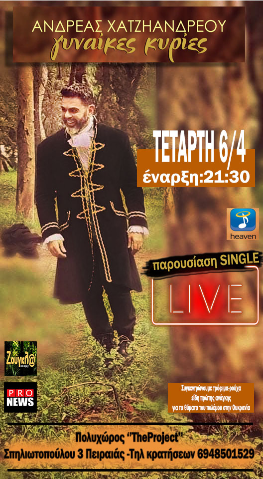 Την παρουσίαση του νέου του single του Ανδρέα Χατζηανδρέου «Γυναίκες Κυρίες» θα πραγματοποιήσει την Τετάρτη 6/4/2022 στον πολυχώρο «The Project» σε μια φαντασμαγορική βραδιά με παράλληλη παρουσίαση και του νέου του video clip.