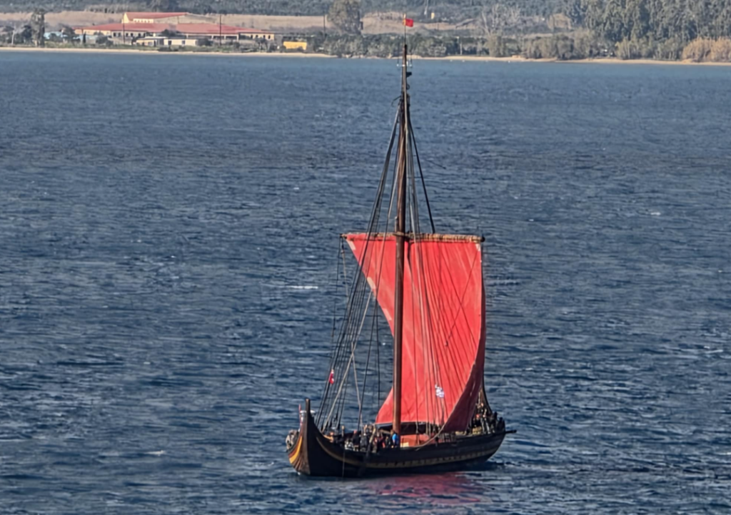 Το πλοίο, μια αυθεντική νορβηγική πεντηκόντορος, εντυπωσίασε τους περαστικούς, καθώς άνοιξε τα πανιά της και συμμετείχε σε σκηνές που εξελίσσονται μέσα στον Όρμο του Ναβαρίνου. Η γαλέρα, την οποία χειρίζεται η ομάδα κωπηλατών Draken Harald Hårfagre, κατέπλευσε μέχρι το νησάκι Φανάρι, ενώ παράλληλα τα γυρίσματα συνεχίζονται σε διάφορα σημεία της περιοχής, όπως η Βοϊδοκοιλιά και η Σπηλιά του Νέστορα. Τις επόμενες ημέρες, η ταινία θα ολοκληρώσει το τελευταίο της σετ στην παραλία της Αλμυρόλακκας στη Γιάλοβα.