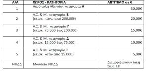 • Εξορθολογισμός του αντιτίμου εισιτηρίων εισόδου, σύμφωνα με κατάταξη των Αρχαιολογικών Χώρων, των Μνημείων και των Μουσείων σε 5 κατηγορίες με βάση την επισκεψιμότητα, ενίοτε τη σημασία τους στην εκάστοτε περιοχή και το ισχύον εισιτήριο εισόδου. Οι 5 κατηγορίες αντιστοιχούν σε 5 βαθμίδες αντιτίμου εισιτηρίων εισόδου ως εξής: