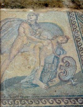 Το αίθριο (αυλή), που αποτελούσε το κέντρο της έπαυλης, ήταν διακοσμημένο με αγάλματα, ενώ οι διάδρομοι γύρω από την αυλή ήταν διακοσμημένη με υπέροχα ψηφιδωτά δάπεδα, σήμερα καταχωμένα για προστασία, που κοσμούνται με πολύχρωμα και σύνθετα γεωμετρικά σχέδια, αλλά και πλούσιο εικονογραφικό διάκοσμο.