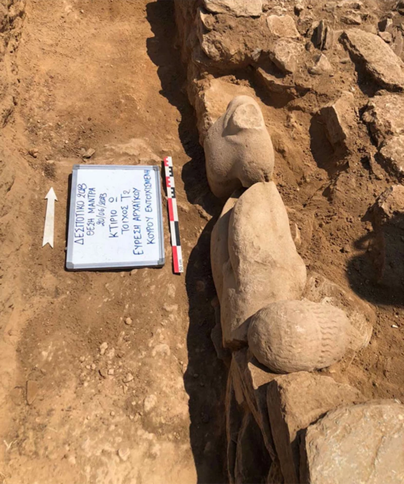 Επίσης, βρέθηκαν τμήματα αρχαϊκών κούρων εντοιχισμένα ως οικοδομικό υλικό.