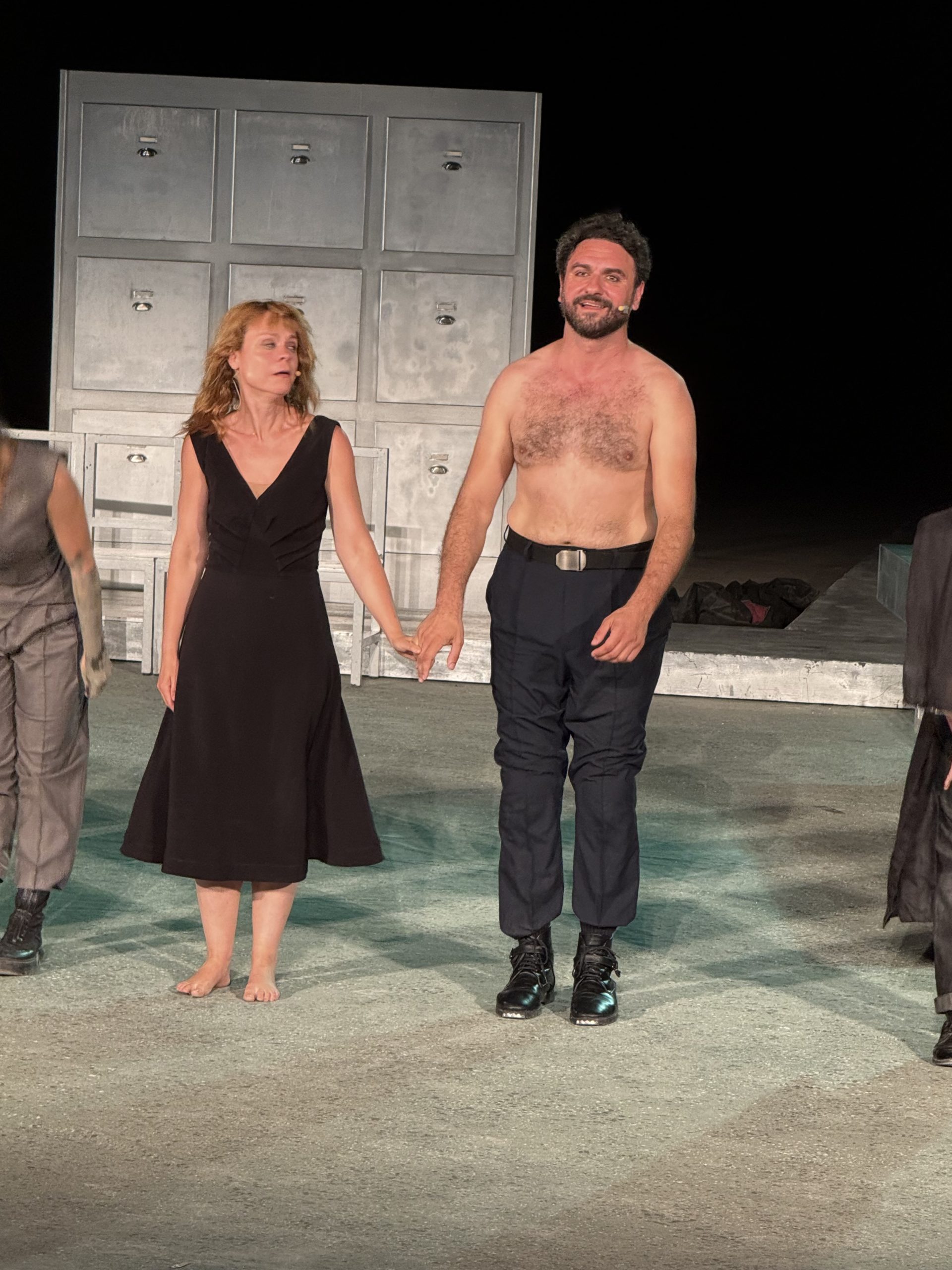 Η Λένα Παπαληγούρα την προσεγγίζει με τη χαρακτηριστική της απλότητα και αμεσότητα αλλά που κρύβει από κάτω την ψυχική υπέρβαση που απαιτεί η αναμέτρηση της με την ηρωίδα και ο Μελέτης Ηλίας είναι ένα ενεργειακό τσουνάμι που πλημμυρίζει την σκηνή επιβλητικά, σαρωτικά, αυταρχικά όπως επιτάσσει το εκτόπισμα ενός δυνάστη βασιλιά που έχει διαπράξει το μέγιστο έγκλημα, αυτό της ύβρεως!