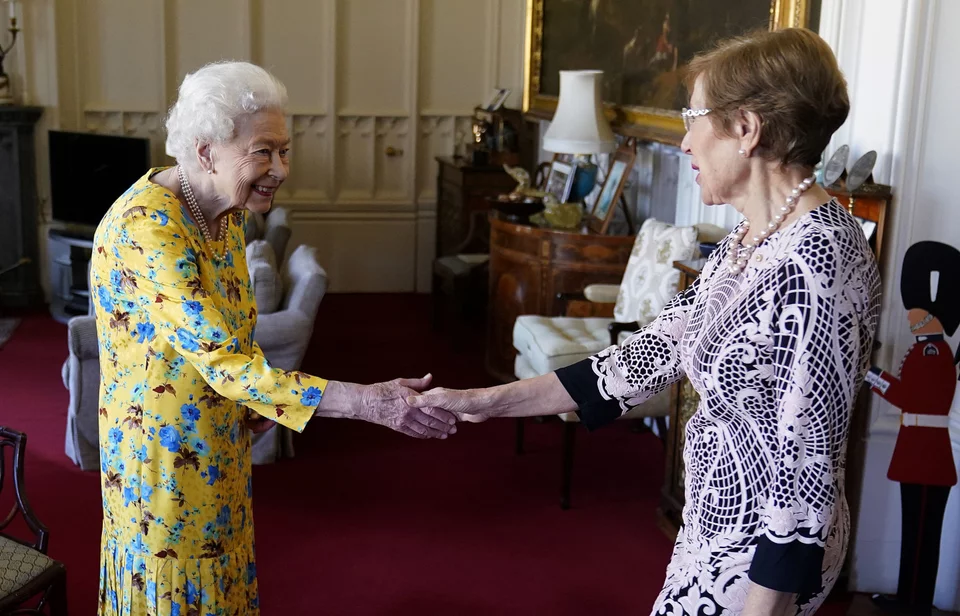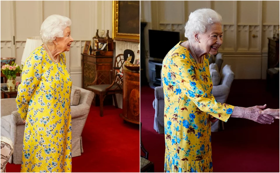 Τα στιγμιότυπα δείχνουν την 96χρονη βασίλισσα να φοράει ένα φωτεινό κίτρινο φόρεμα καθώς χαμογελά και σφίγγει το χέρι της Αυστραλής πολιτικού μέσα στο κάστρο Γουίνδσορ.