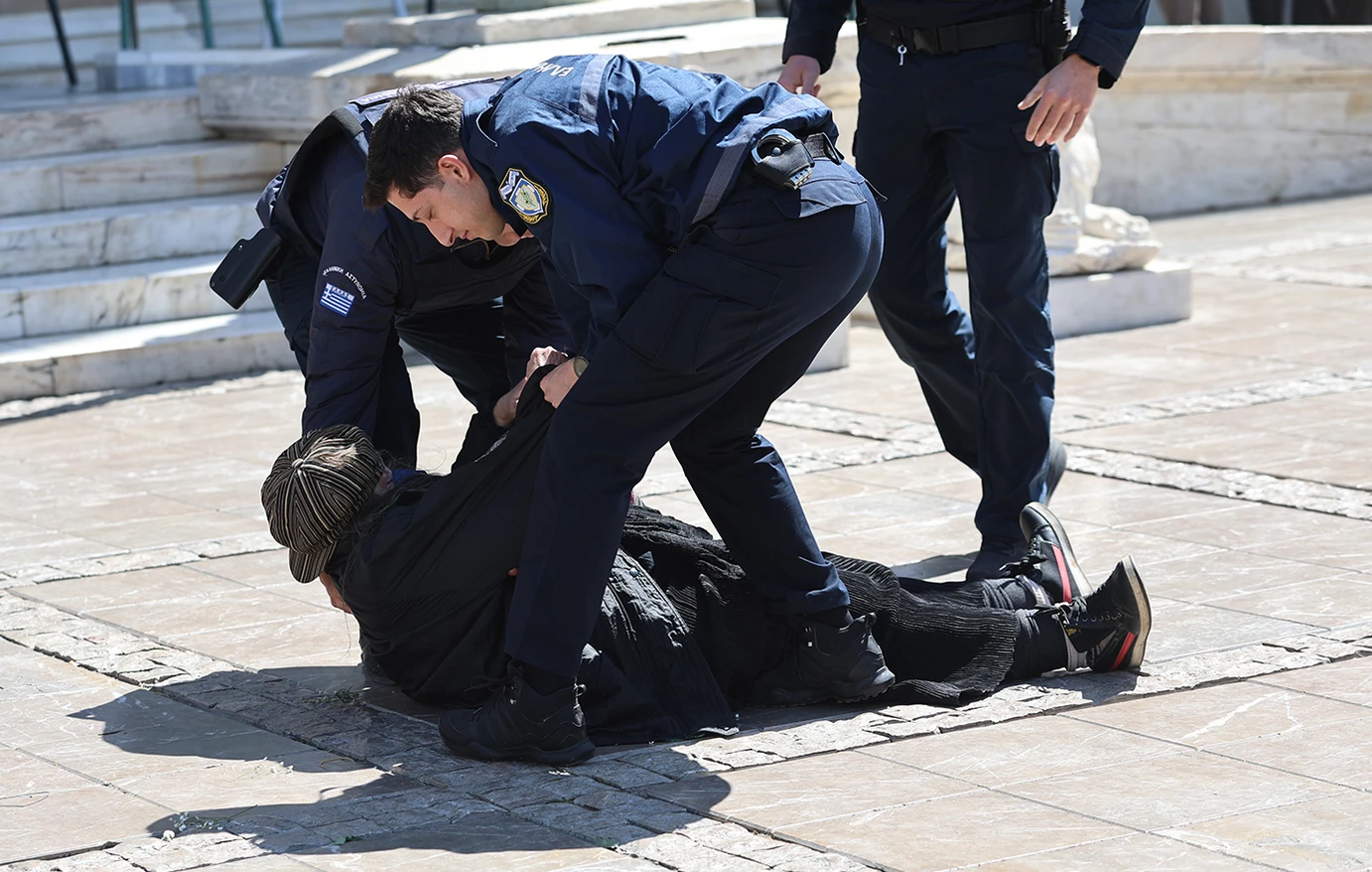 Λίγο μετά τις φωνές της, οι αστυνομικές δυνάμεις που βρίσκονταν στο σημείο για την τήρηση της τάξης αντέδρασαν άμεσα. Οι αστυνομικοί την απομάκρυναν από τον χώρο της Μητρόπολης, ώστε να συνεχιστεί χωρίς προβλήματα η τελετή και να διατηρηθεί το κλίμα συγκίνησης.