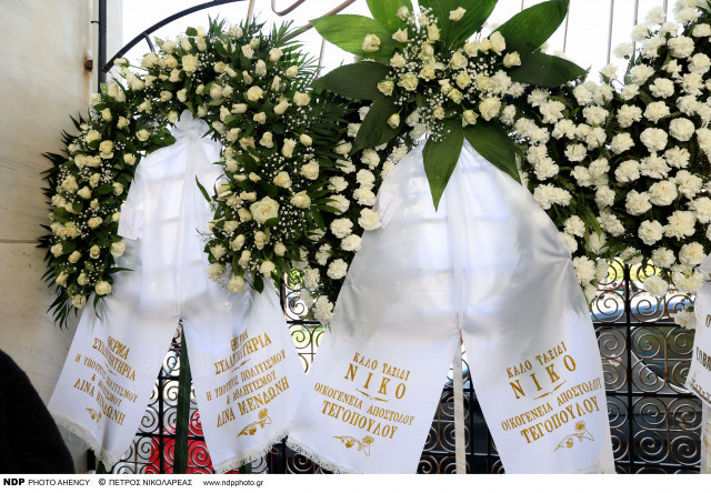 Στεφάνια για τον Νίκο Ξανθόπουλο έστειλαν η υπουργός Πολιτισμού, Λίνα Μενδώνη, καλλιτέχνες, η ΑΕΚ, της οποίας ο ηθοποιός ήταν μεγάλος οπαδός κ.α.