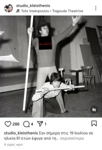 «Σαν σήμερα στις 19 Ιουλίου σε ηλικία 81 ετών έφυγε από τη ζωή ο Τόλης Βοσκόπουλος. Υπήρξε από τους μεγαλύτερους καλλιτέχνες της μεγάλης οθόνης στην οποία εμφανίστηκε το 1963, του θεατρικού σανιδιού το 1958 και της μουσικής. Το Studio Κλεισθένης τον θυμάται με μια αδημοσίευτη φωτογραφία από τις πρόβες για την αγαπημένη θεατρική παράσταση του Βοσκόπουλου Τραγούδα θεατρίνε, στην οποία έπαιζε και ο Στάθης Ψάλτης. Με τον φακό του Κλεισθένη το 1978 στο θέατρο Βέμπο» γράφει στην ανάρτηση.
