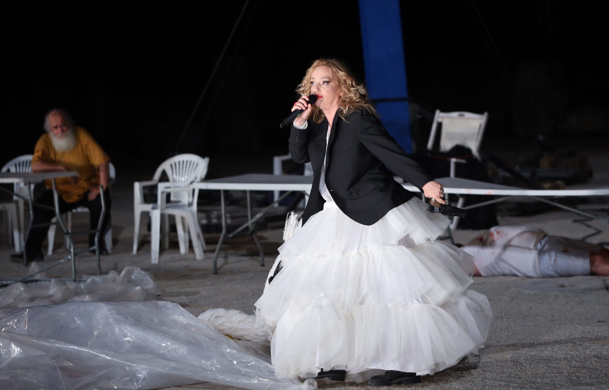 Μάλιστα, δεν ήταν λίγοι εκείνοι που γιούχαραν την ηθοποιό και σκηνοθέτιδα αλλά και τον υπόλοιπο θίασο, ενώ κάποιοι άλλοι θέλησαν να τους υποστηρίξουν ξεσπώντας σε θερμά χειροκροτήματα.