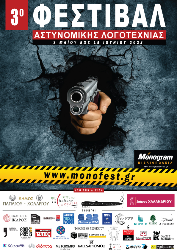 Το 3ο Φεστιβάλ Αστυνομικής Λογοτεχνίας διοργανώνεται από το βιβλιοπωλείο Monogram, υπό την αιγίδα των Δήμων Παπάγου-Χολαργού και Χαλανδρίου, της Ελληνικής Λέσχης Συγγραφέων Αστυνομικής Λογοτεχνίας (ΕΛΣΑΛ), του Ιταλικού Μορφωτικού Ινστιτούτου και της Book Press. Οι εκδηλώσεις πραγματοποιούνται με τη συμμετοχή και με τη συνεργασία των εκδοτικών οίκων Άγρα, Bell, Διόπτρα, Δρόμων, Ίκαρος, Καλειδοσκόπιο, Καστανιώτη, Κέδρος, Κείμενα, Κλειδάριθμος, Κύφαντα, Λιβάνη, Μεταίχμιο, Μίνωας, Μολύβι, Όστρια, Πατάκη, Τόπος, Ψυχογιός και 24 γράμματα.
