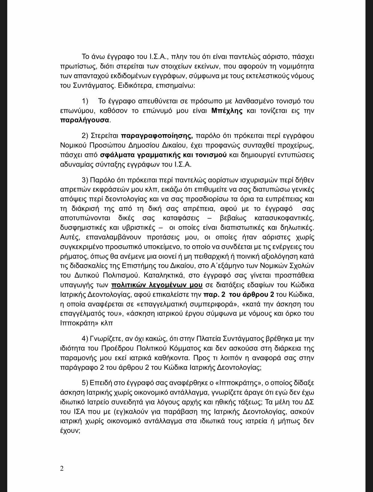 Η απάντηση στον ΙΣΑ του κ.Ζώη Μπέχλη: