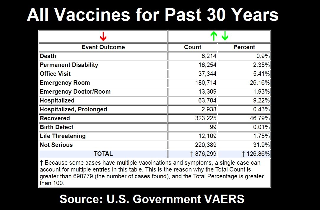 Αριθμός πραγματικά τεράστιος εάν σκεφτεί κάποιος πως όλα τα προηγούμενα 30 χρόνια είχαν καταγραφεί 6.214 θάνατοι μετά από εμβολιασμό από όλα τα εμβόλια που είχε εγκρίνει ο FDA. Κάτι που σημαίνει πως οι θάνατοι που έχουν καταγραφεί μετά από εμβολιασμό κατά Covid-19 είναι 2,5 φορές περισσότεροι απ’ όλους τους θανάτους που έχουν καταγραφεί τα τελευταία 30 χρόνια.
