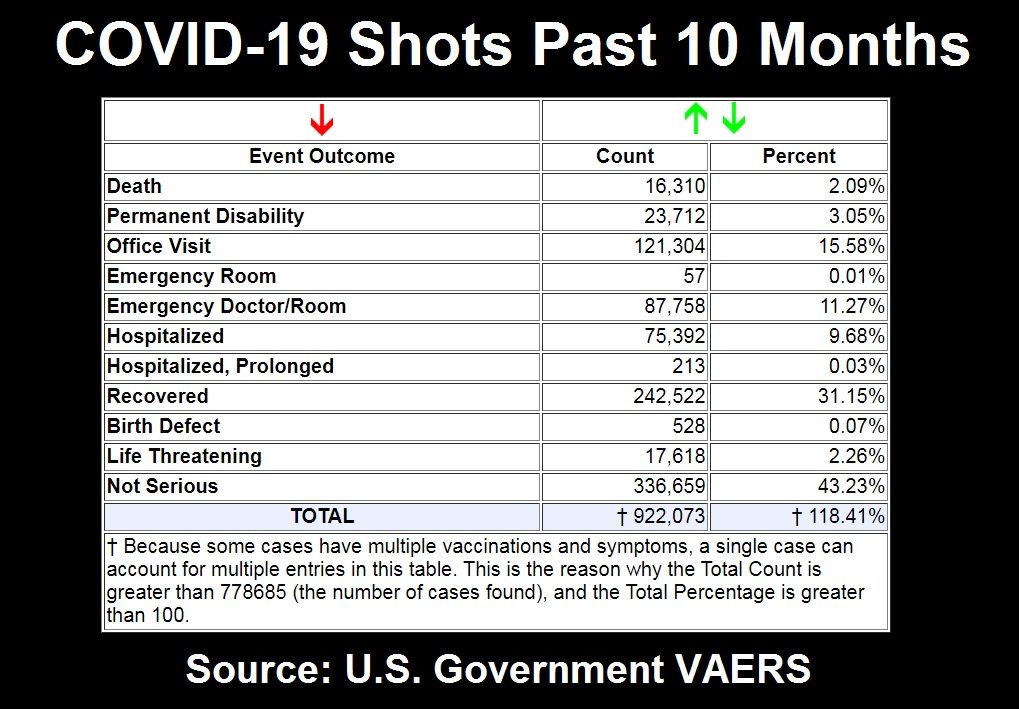 Σοκαριστικά είναι τα στοιχεία που δημοσιεύει γι’ ακόμα μια φορά το VAERS και αφορούν τους θανάτους και τα ανεπιθύμητα συμβάντα που έχουν καταγραφεί μετά από εμβολιασμό κατά του κορωνοϊού.