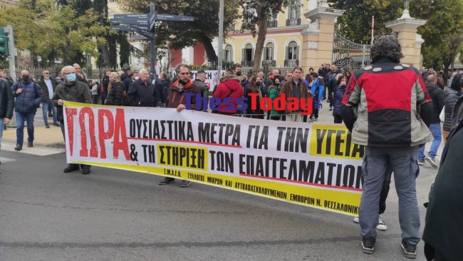 Οι εκπρόσωποι της εστίασης, που σήμερα πραγματοποιούν πανελλαδική κινητοποίηση, με ένα φέρετρο έξω από Διοικητήριο Θεσσαλονίκης, θέλησαν να στείλουν το μήνυμα ότι η εστίαση πεθαίνει με τα μέτρα που έχει πάρει η κυβέρνηση για τη διαχείριση της πανδημίας.