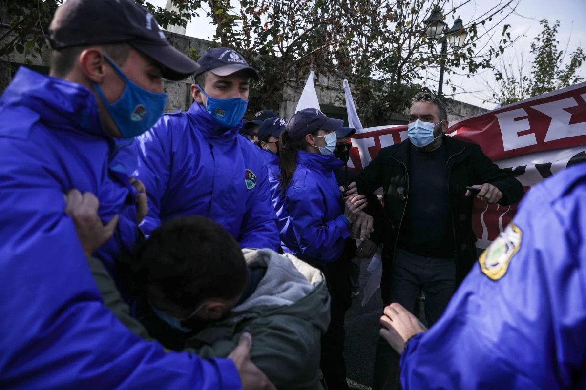 Νωρίτερα είχε επικρατήσει ένταση όταν διαδηλωτές προσπάθησαν να ανέβουν από τη Βασιλίσσης Σοφίας προς τα λουλουδάδικα δίπλα στη Βουλή. Εκεί εμποδίστηκαν από αστυνομικές δυνάμεις που προσπάθησαν να κλείσουν τον δρόμο με αποτέλεσμα να υπάρξει αντίδραση από τους διαδηλωτές και να σημειωθεί ένταση.