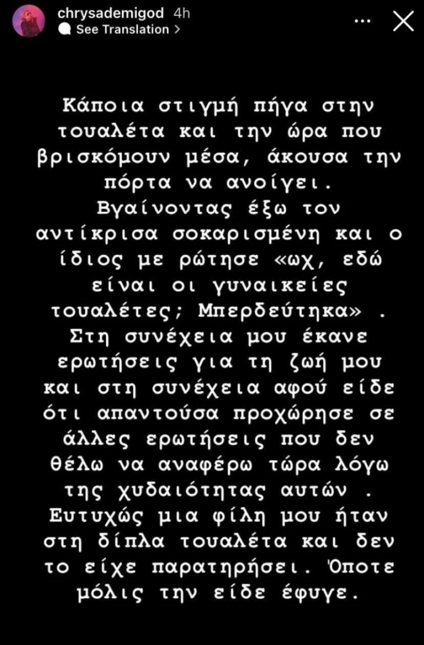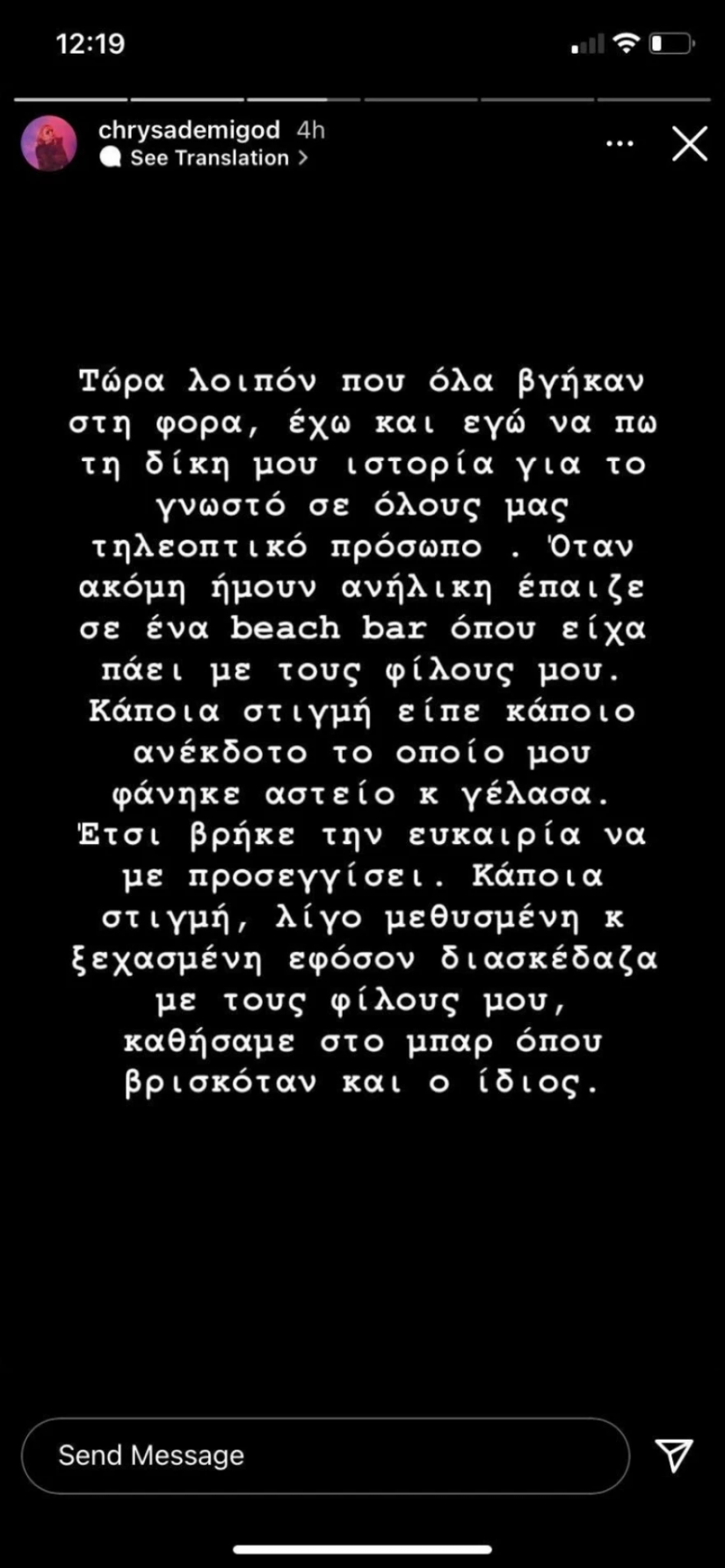 Οι αναρτήσεις της Chrysa όπου διηγήθηκε τη συνάντησή της με τον παρουσιαστή σε κάποιο μπαρ όταν εκείνη ήταν ανήλικη.